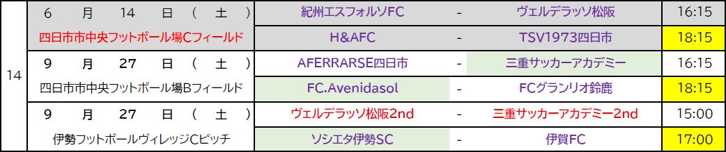 高円宮杯JFA U-15サッカーリーグ2025三重 1部リーグ 第14節