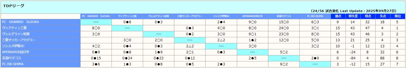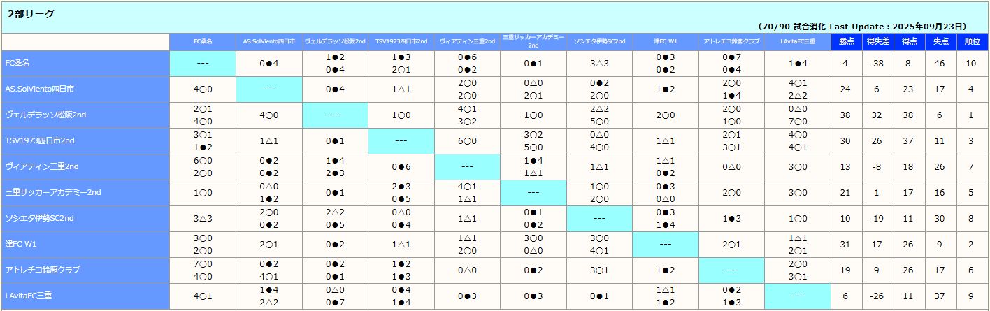 高円宮杯JFA U-15サッカーリーグ2025三重 1部リーグ 第14節結果