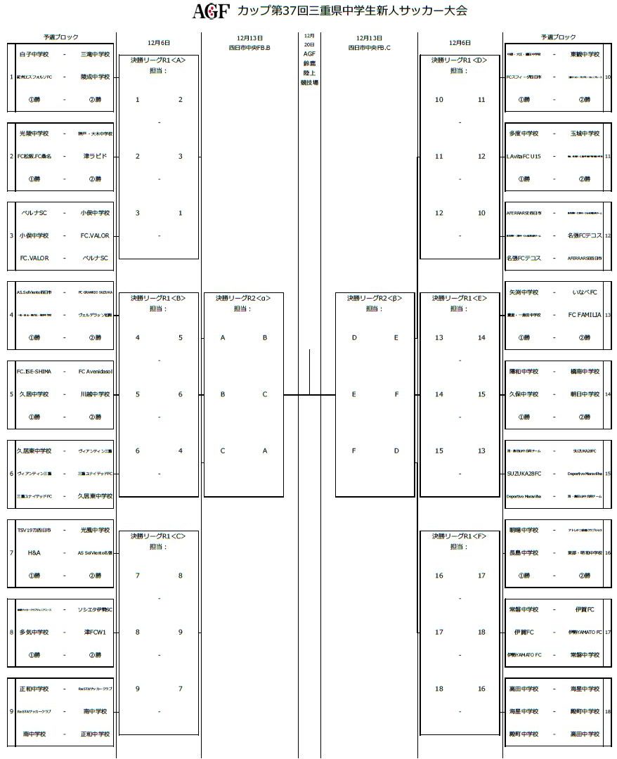 AGFカップ 第36回三重県中学生新人サッカー大会予選ブロック