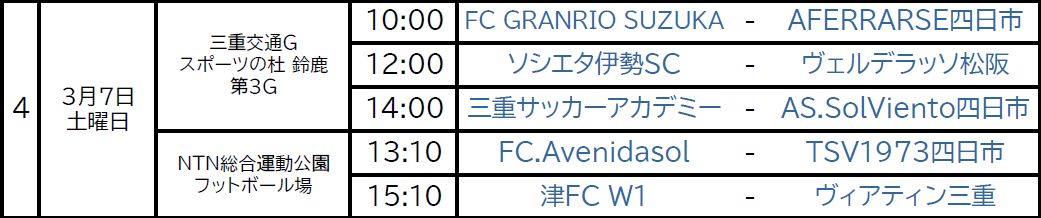高円宮杯JFA U-15サッカーリーグ2026三重 1部リーグ 第4節